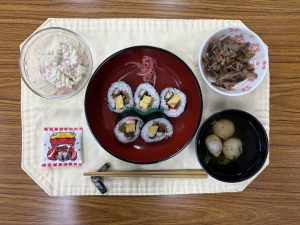 昼食には巻き寿司をお出ししています😋