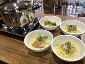 備蓄品(水、カセットコンロ、ガスボンベ、鍋、使い捨て容器)を使用し炊き出し訓練を実施しました。