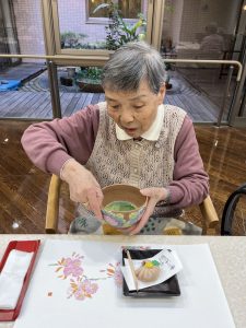 ご自身で作られた練り切りはお抹茶と一緒に頂きます🍵
